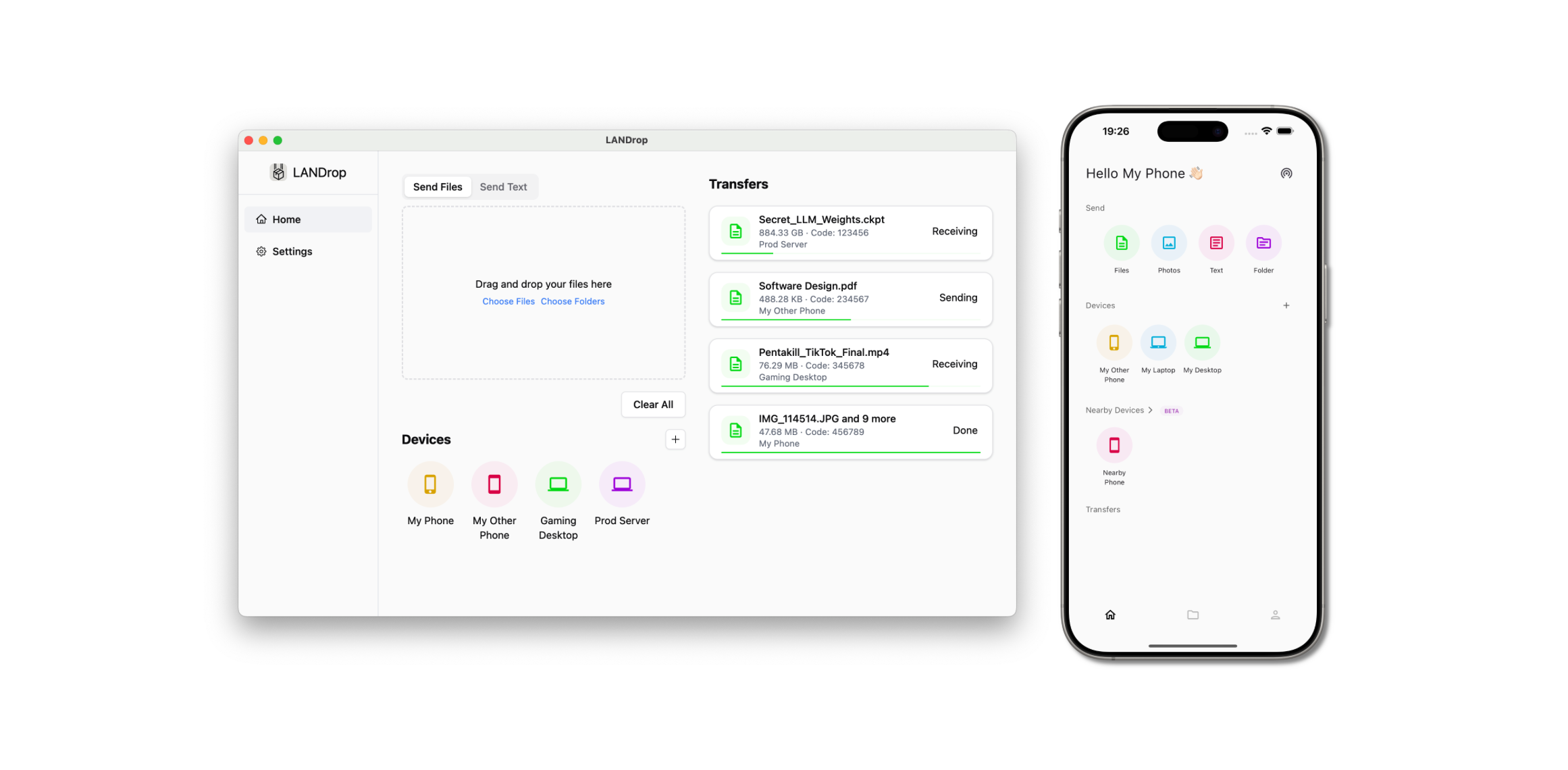 试想一下,你是不是经常在手机和电脑之间传文件,但被蓝牙的龟速、云盘的限速以及各种复杂的数据线传输方式折磨得想砸键盘?下面给大家介绍一款目前最好用的支持电脑,手机,IPad之间照片,视频,文件的互传神器LANDrop,它是一个跨平台的免费开源项目,支持在局域网内以超快的速度传输文件。不仅如此,它采用先进的加密技术,传输过程安全可靠,再大的文件都无需压缩,特别适合照片、文档、视频等文件传输需求。LANDrop 无需互联网,不会扣你一分流量,随心用手机热点就能搞定!